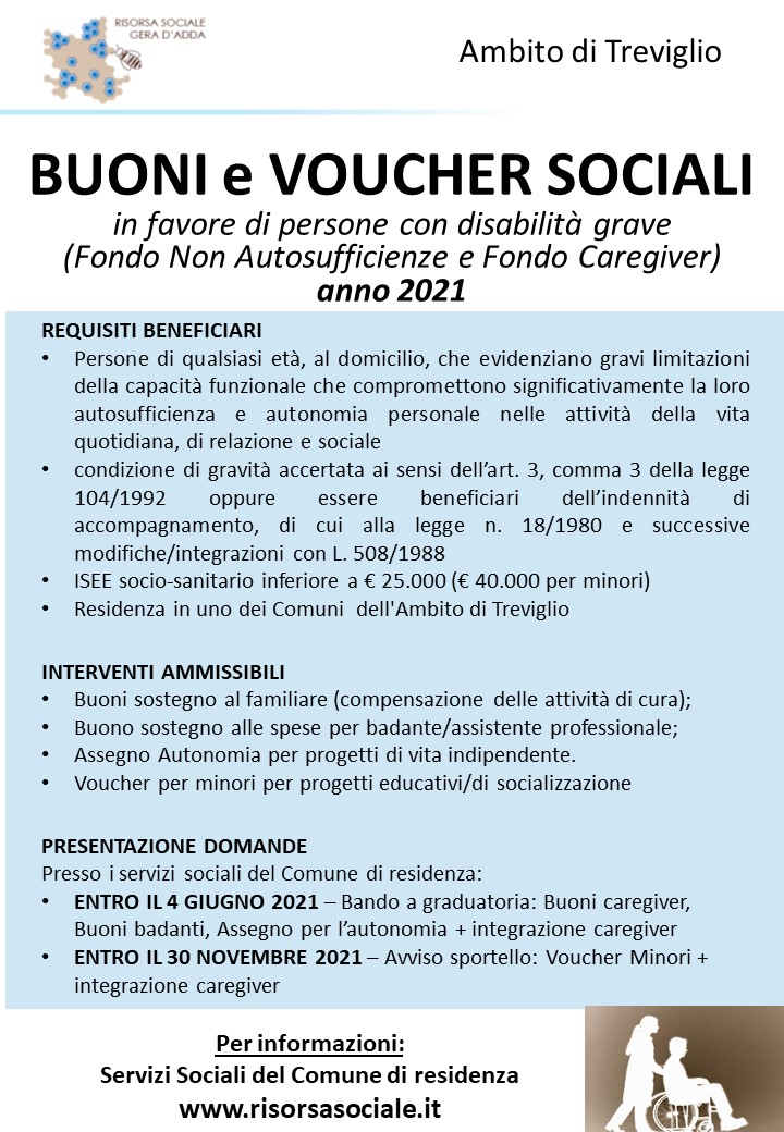 - Buoni e voucher sociali in favore di persone con disabilità grave 2021.