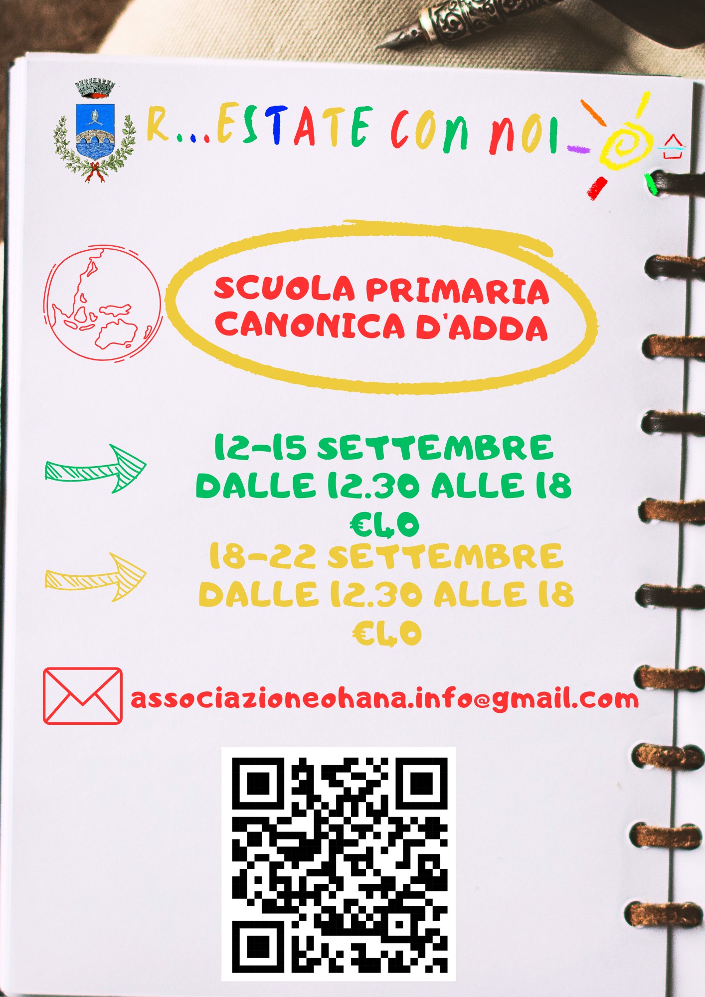 - Sono aperte le iscrizioni al servizio R...Estate con Noi, organizzato dal Comune di Canonica d’Adda in collaborazione con Associazione Ohana e rivolto agli alunni della scuola primaria.
